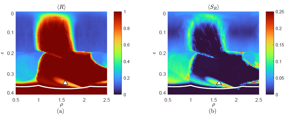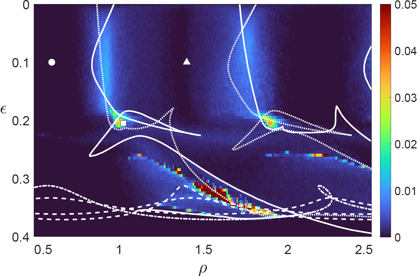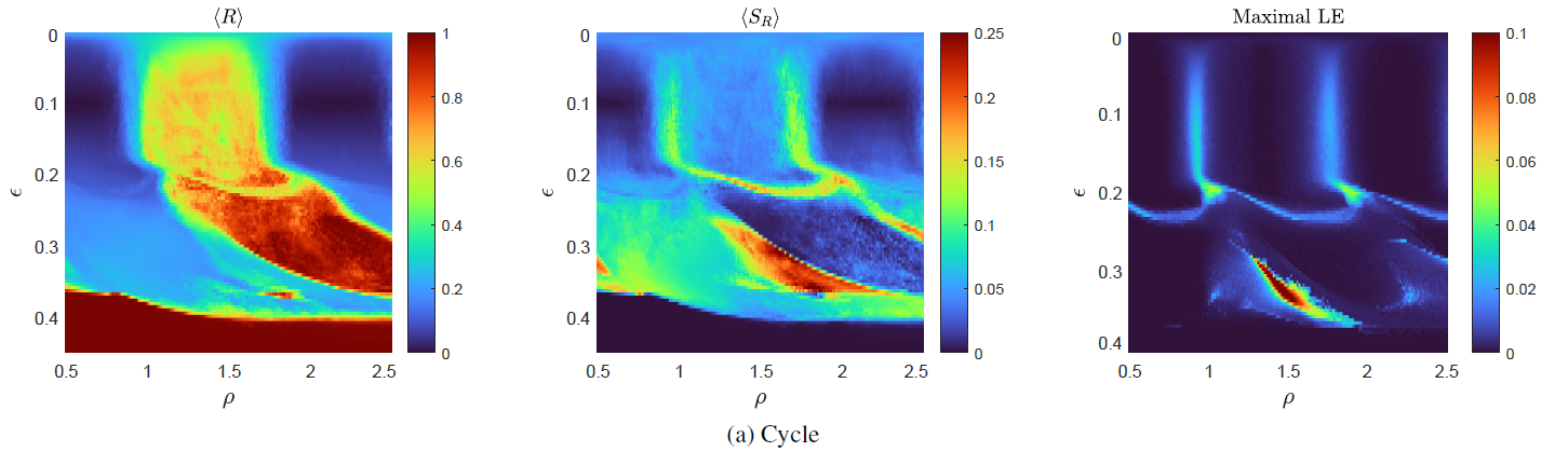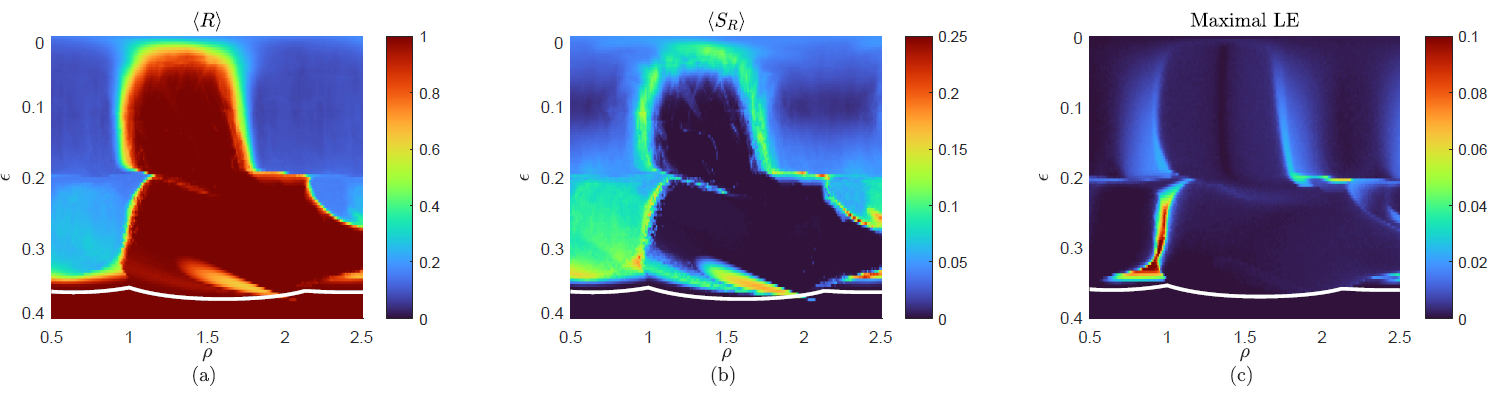 We computed the maximal Lyapunov exponent as a function of the parameters $(\rho, \epsilon)$